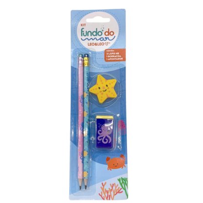 As criancas vao mergulhar na diversao com o kit lapis de cor Fundo do Mar. Ele vem com lapis grafite HB nº2, apontador e borracha. Perfeito para todas as idades e pode ser usado tambem por criancas que estao aprendendo a escrever. Agora as tarefas escolares serao a hora mais divertida do dia. Com o kit lapis de cor Fundo do Mar, escrever e estudar vai virar a praia dos pequenos.